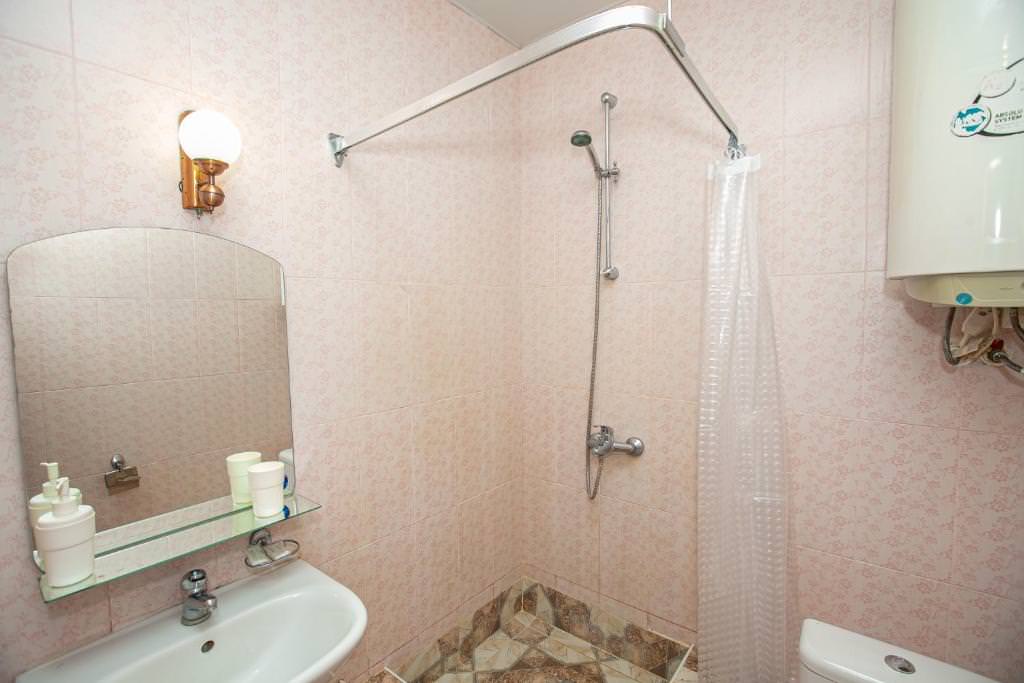 Площадь номера - 18 кв.м. 2 осн. места. 1 доп. место. Балкон. Мебель: кровать двуспальная, прикроватные тумбочки, шкаф. Оборудование: кондиционер, телевизор, холодильник, электрочайник. Санузел: с душем, фен. Сервис: смена полотенец, смена постельного белья, уборка номера.